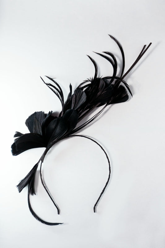 LYDIA STATEMENT FEATHER FASCINATOR BLACK