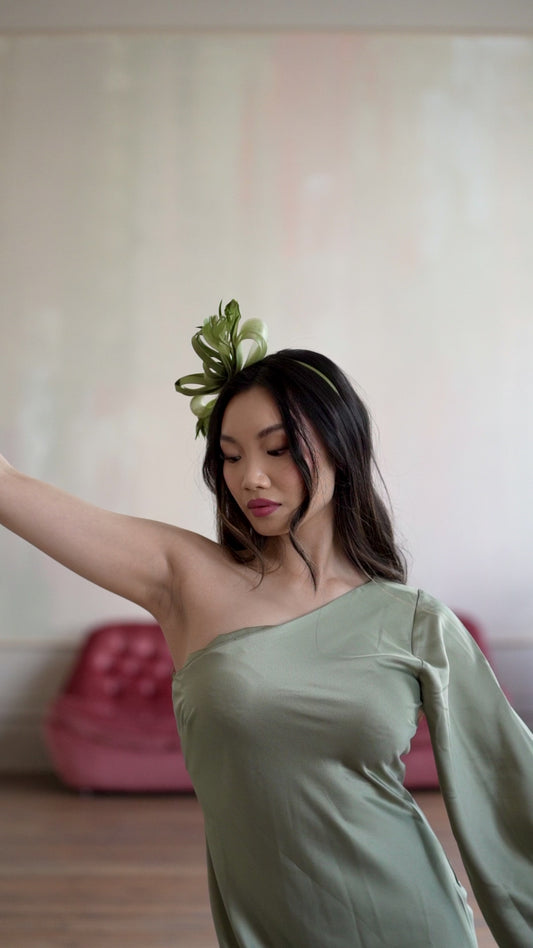 NATALIA FASCINATOR HEADBAND OLIVE GREEN