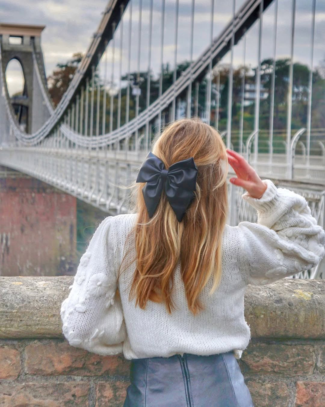 Add a touch of the Upper East Side with our sophisticated leather look Blair Bow. Our structured bow adds a subtle statement and a touch of class to any outfit.
