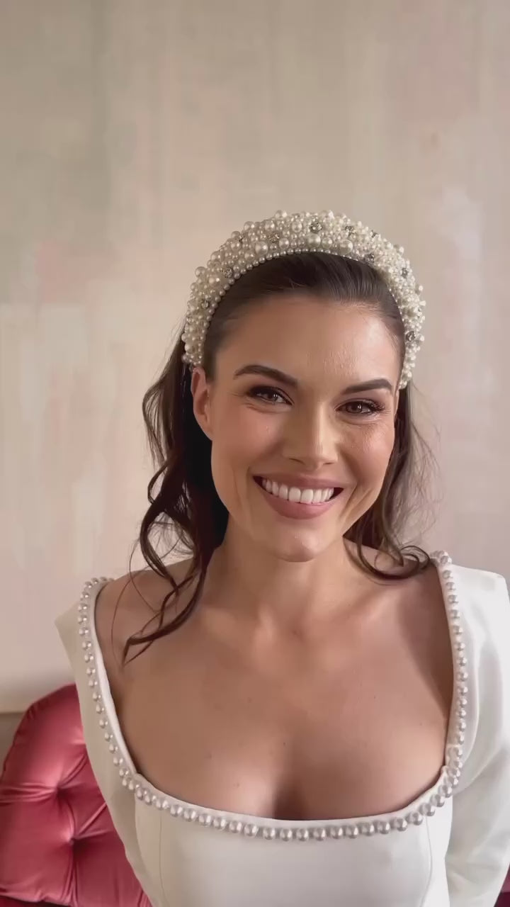 Our Diana headband is adorned with both crystal and pearls to add a little extra glamour to your bridal look! Padded for extra comfort and if you're looking for a headband that you can wear long after your wedding weekend is over, then this is the perfect choice.