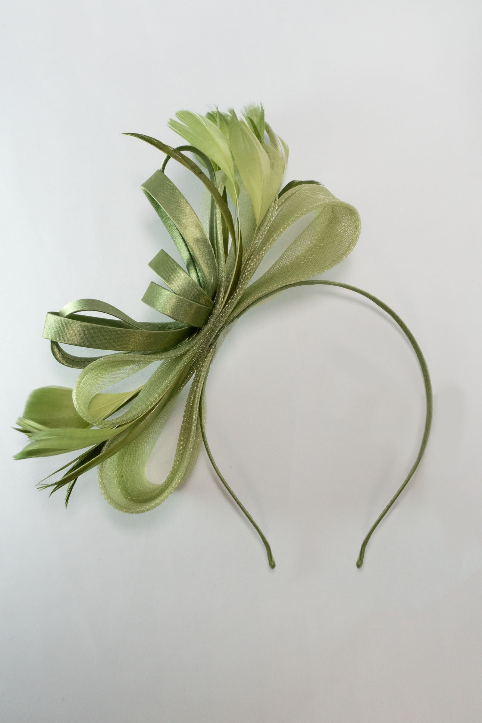 NATALIA FASCINATOR HEADBAND OLIVE GREEN